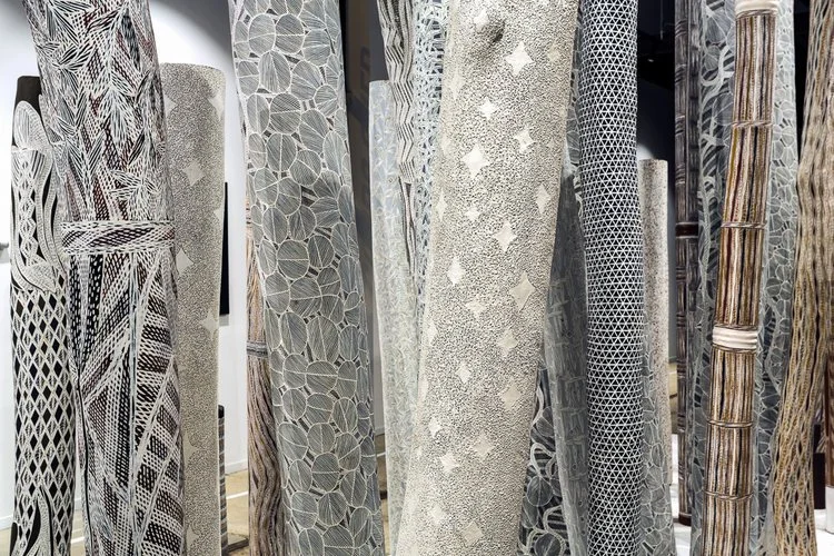 The enigmatic qualities and materiality of white earth pigments in Aboriginal artwork from the Kimberley (WA), Arnhem Land (NT) and Tiwi Islands (NT) in painting, and three-dimensional works was presented in the exhibition at FORM entitled Earth Matters. In different regions the white earth pigment has localized names according to the language of that particular place, however, across the north of Australia the preciousness and value of this material is a unifying element. Its aesthetic properties are only an element of the diverse cultural, artistic and spiritual significance for Aboriginal people. The material has been used in cave and rock art over millennia, in body painting and decoration, for weapons and objects of material culture, to represent the abstract spirit world, for cleansing and healing, and as a medicine that is consumed to treat certain ailments or applied to the body when people are sick or grieving. As a medium that is deeply connected to identity and tradition, white earth pigments provide opportunities for abstraction, minimalism and experimentation.